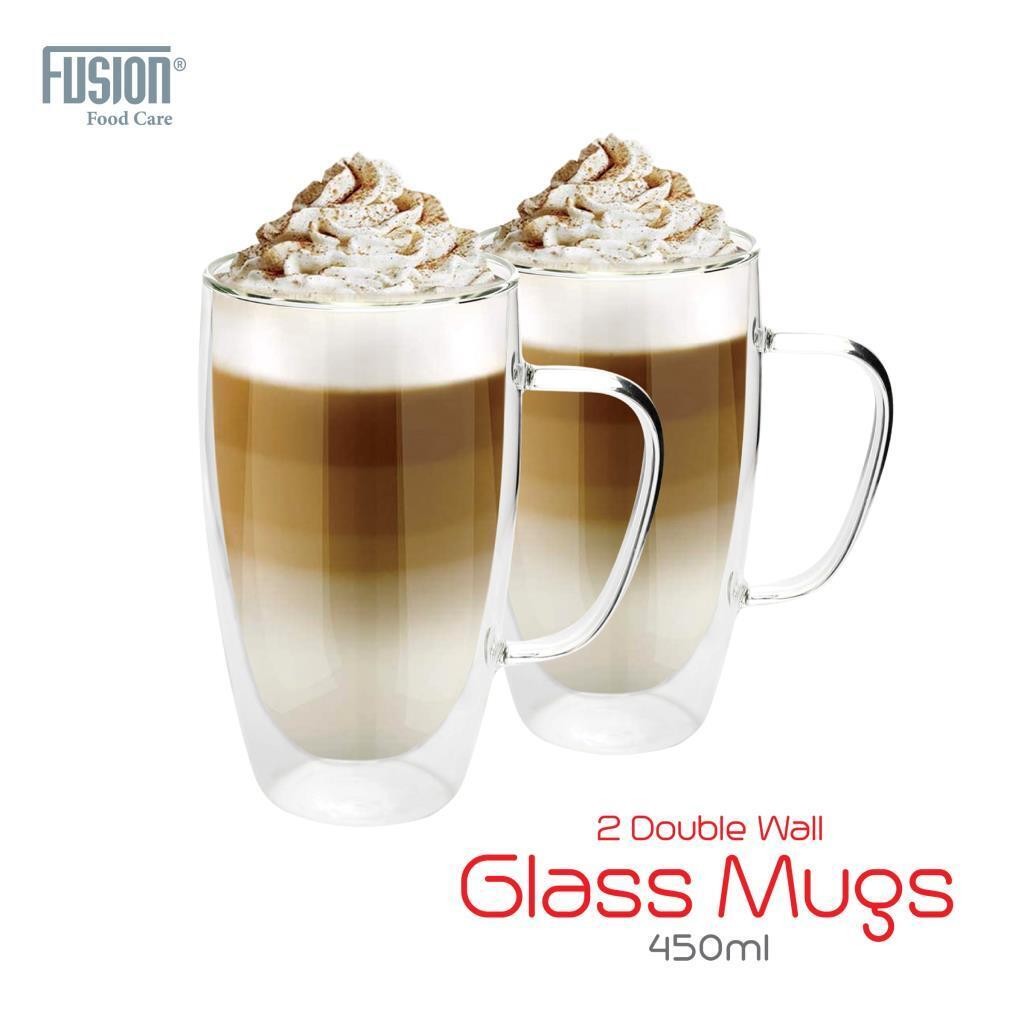 2 X Double Walled Glasses 350ML or 450ML for Latte Coffee Tea Glass Mugs Wall