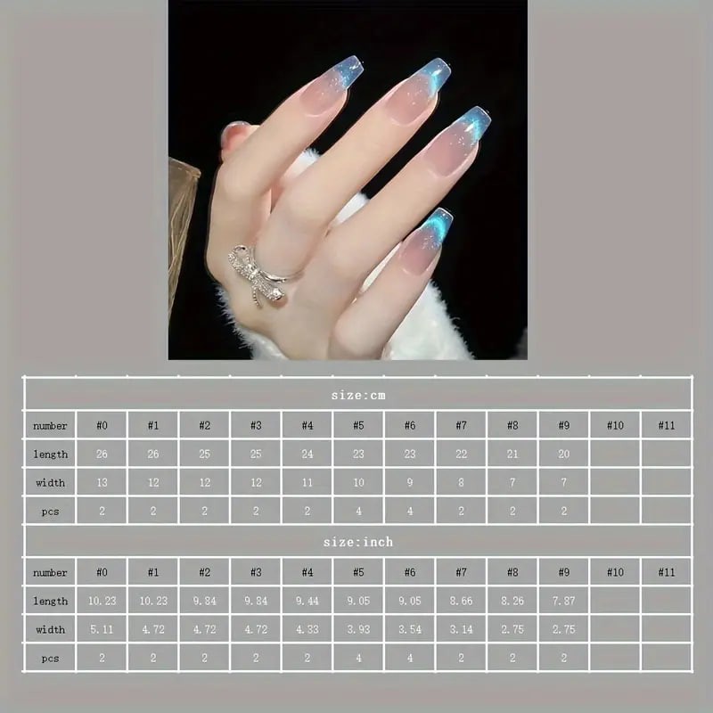 24pcs Aurora Blue Gradient Press On Nails, Glitter Fake Nails With Chameleon Effect, Long Ballet Shape Sparkle False Nails For Women Girls