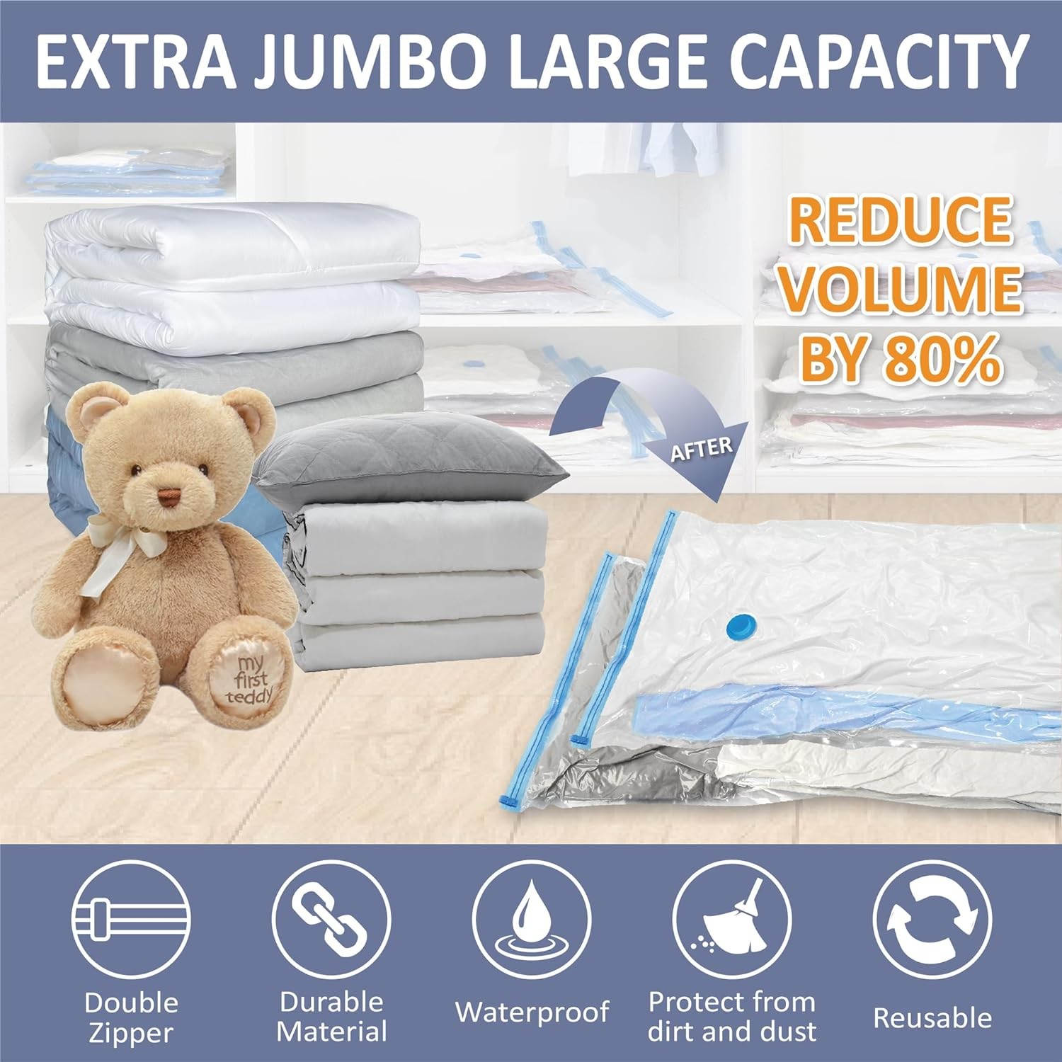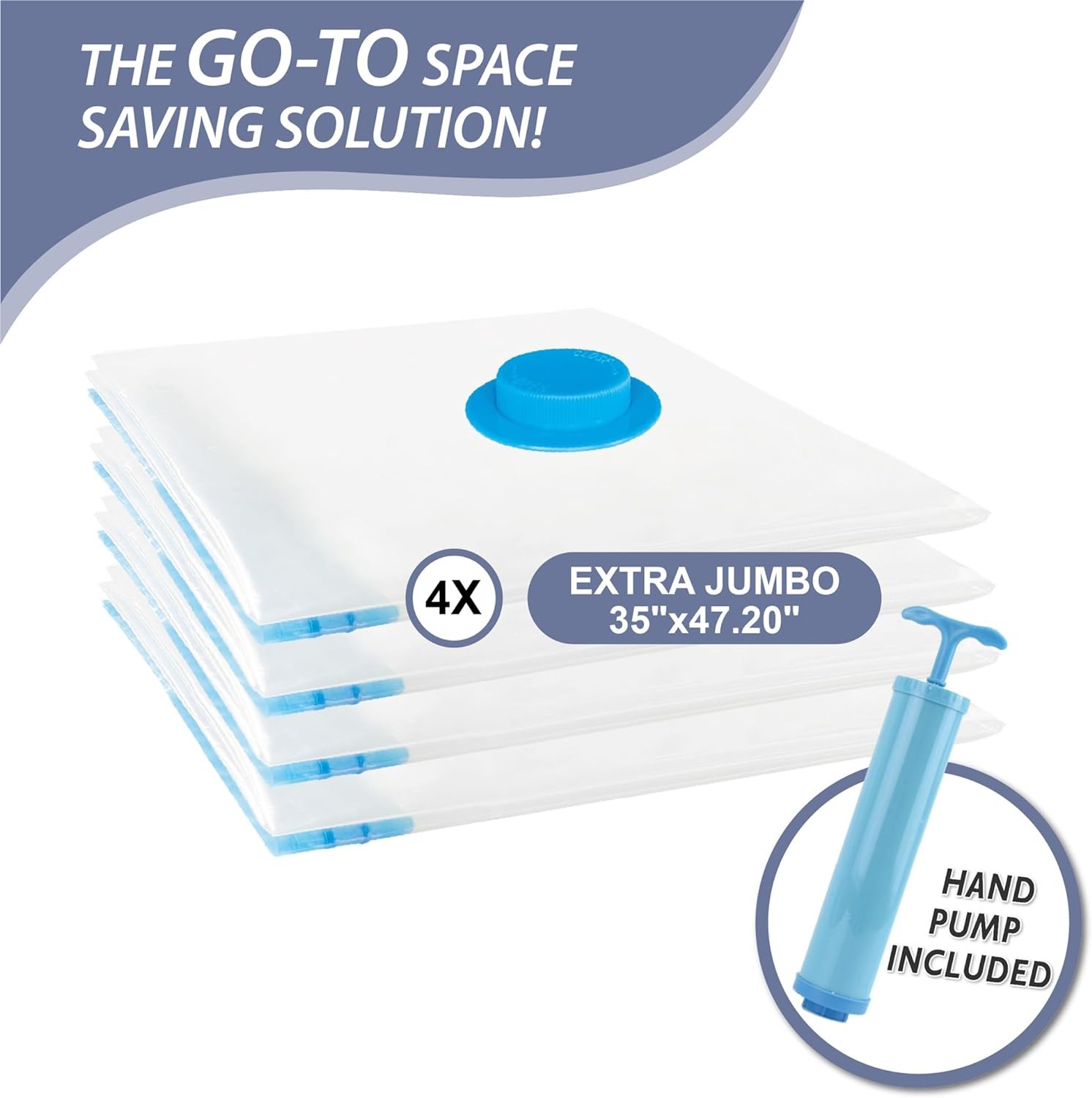 Our extra jumbo vacuum storage bag combo with 4 XXL vacuum sealed storage bags is a must-have essential for saving your storage space!