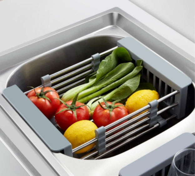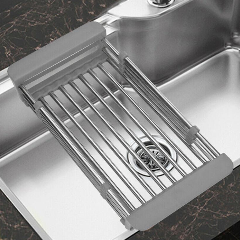 Adjustable Kitchen Dish Drying Sink Stainless Steel Rack Drain Strainer Basket