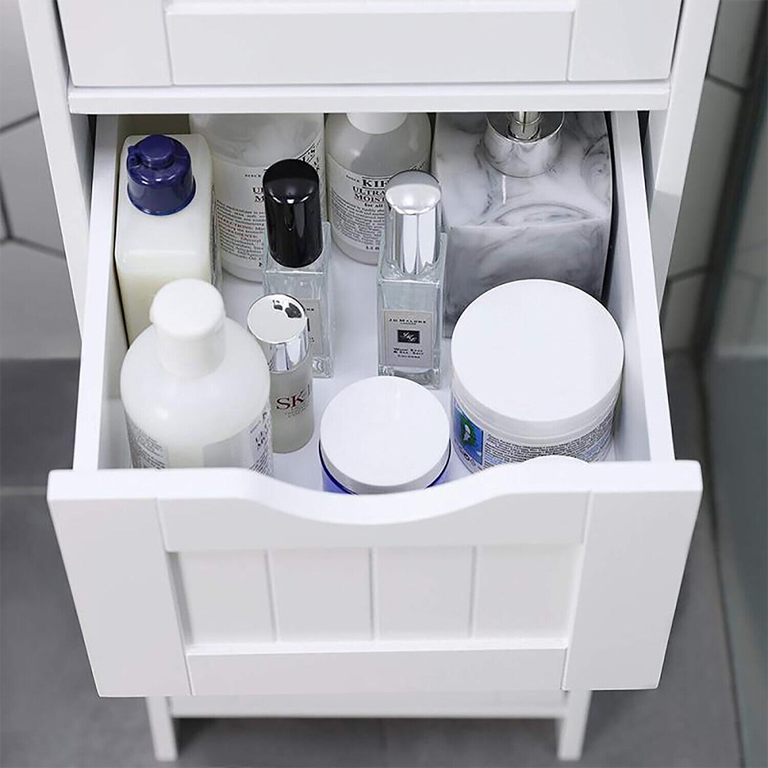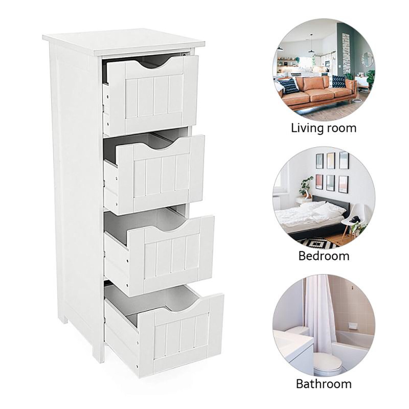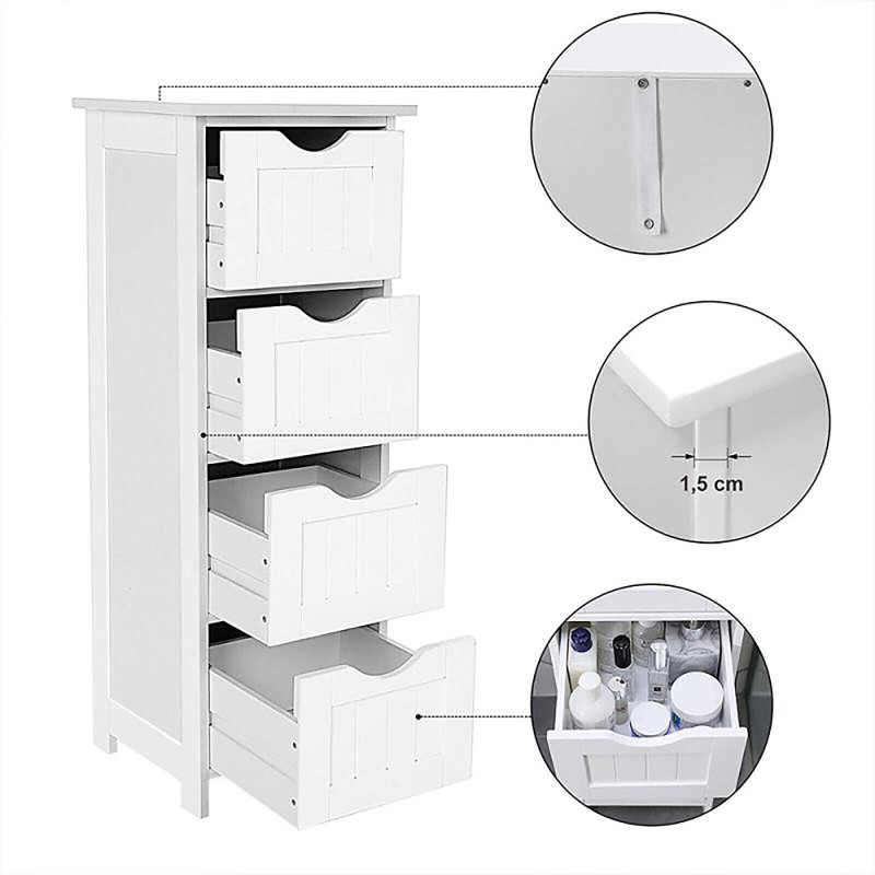 Bathroom Wood Cabinet Storage 4 Drawer 1 Door Free Standing Cupboard Unit White