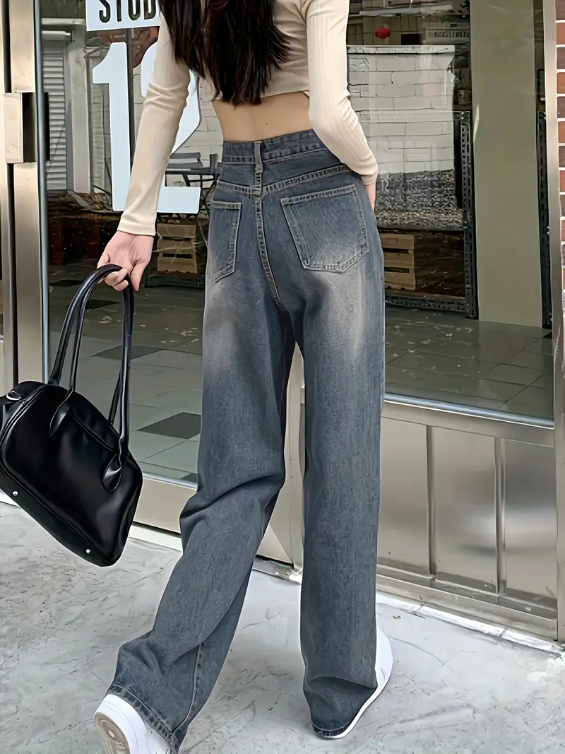 blue high waist baggy jeans loose fit retro style versatile wide legs jeans womens denim jeans clothing details 2blue high waist baggy jeans loose fit retro style versatile wide legs jeans womens denim jeans clothing details 2