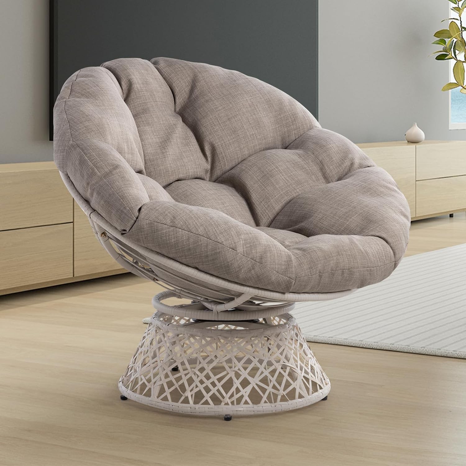 Papasan Chair with Cushion and Frame, 360 Degree Swivel Papasan Chair, Wicker Papasan Chair