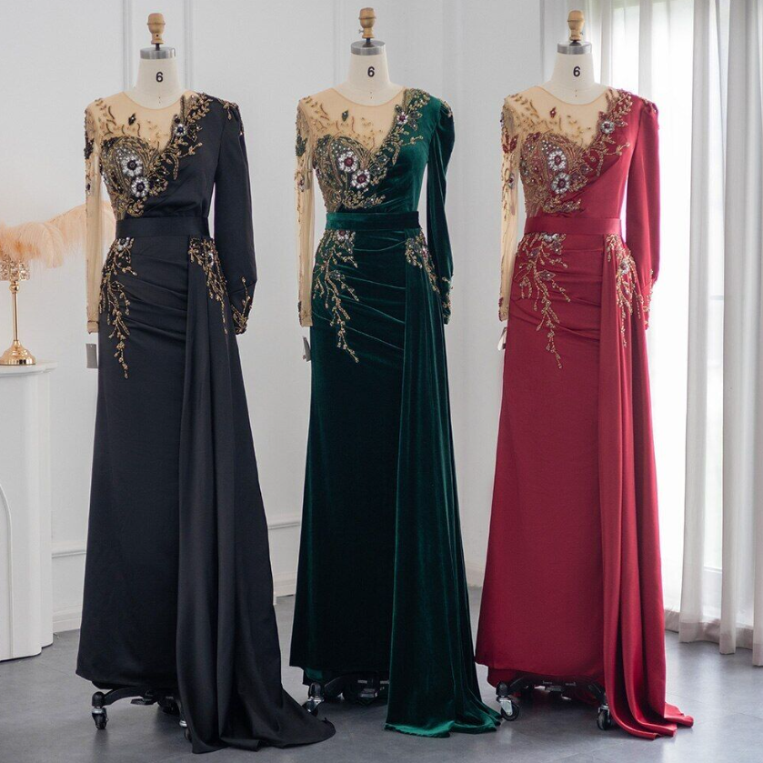 Burgundy Arabic Mermaid Evening Dress Wedding Guest Luxury Dubai Beaded Gowns