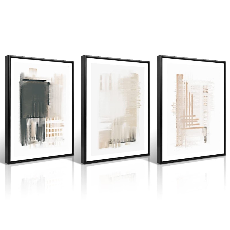 Canvas Wall Art, Set of 3 Framed Art Prints, Abstract Painting, Neutral Minim...
