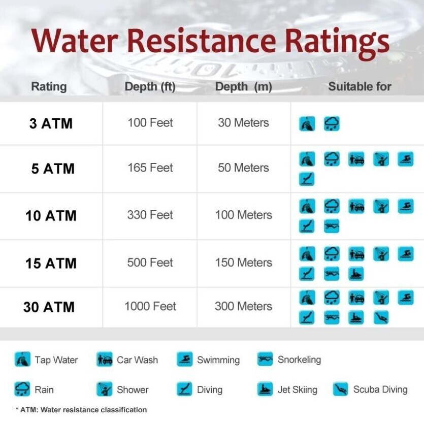 | Water Resistance | 30 m (3 ATM) |