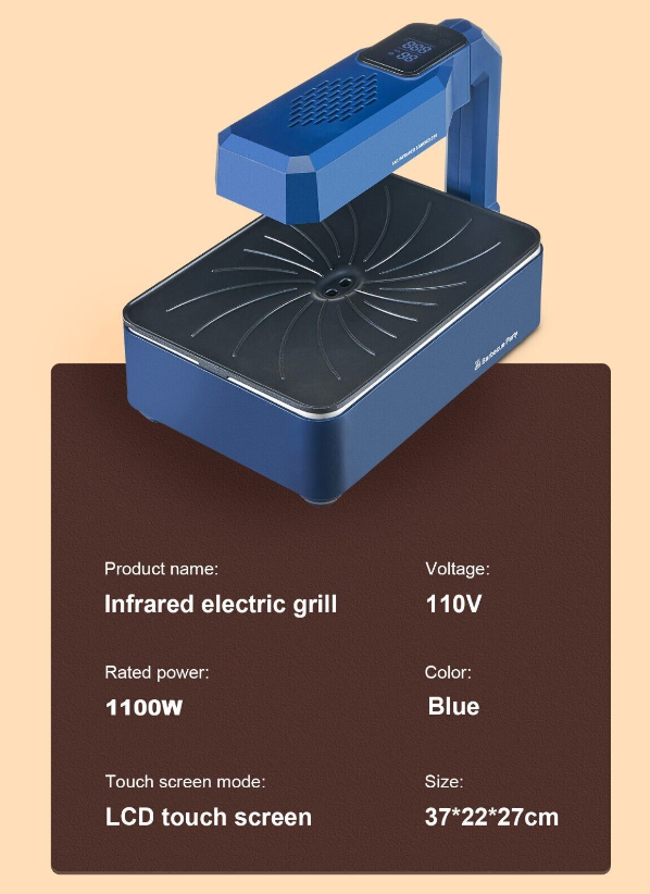 Control the temperature of grease, reduce oil fume, heat light far infrared heating, and heat up faster.