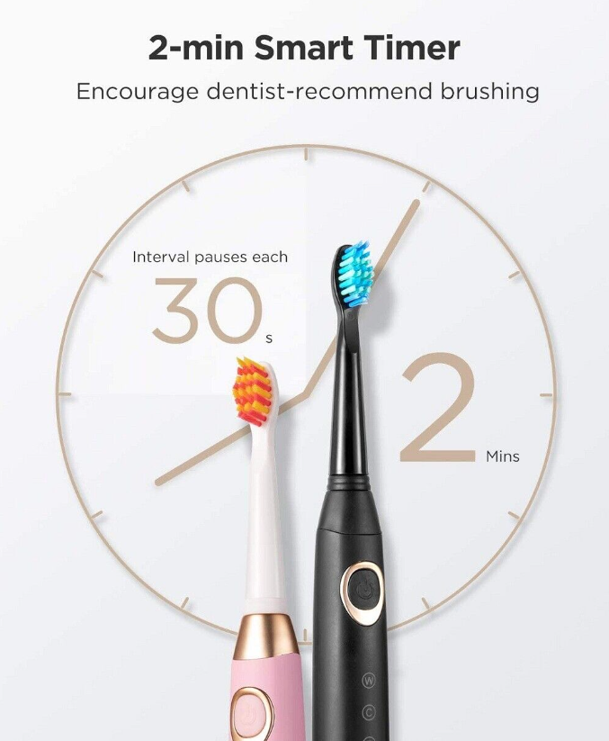 Fairywill Electric Sonic Toothbrush x 2 Rechargeable 2 Min Timer Black & Pink
