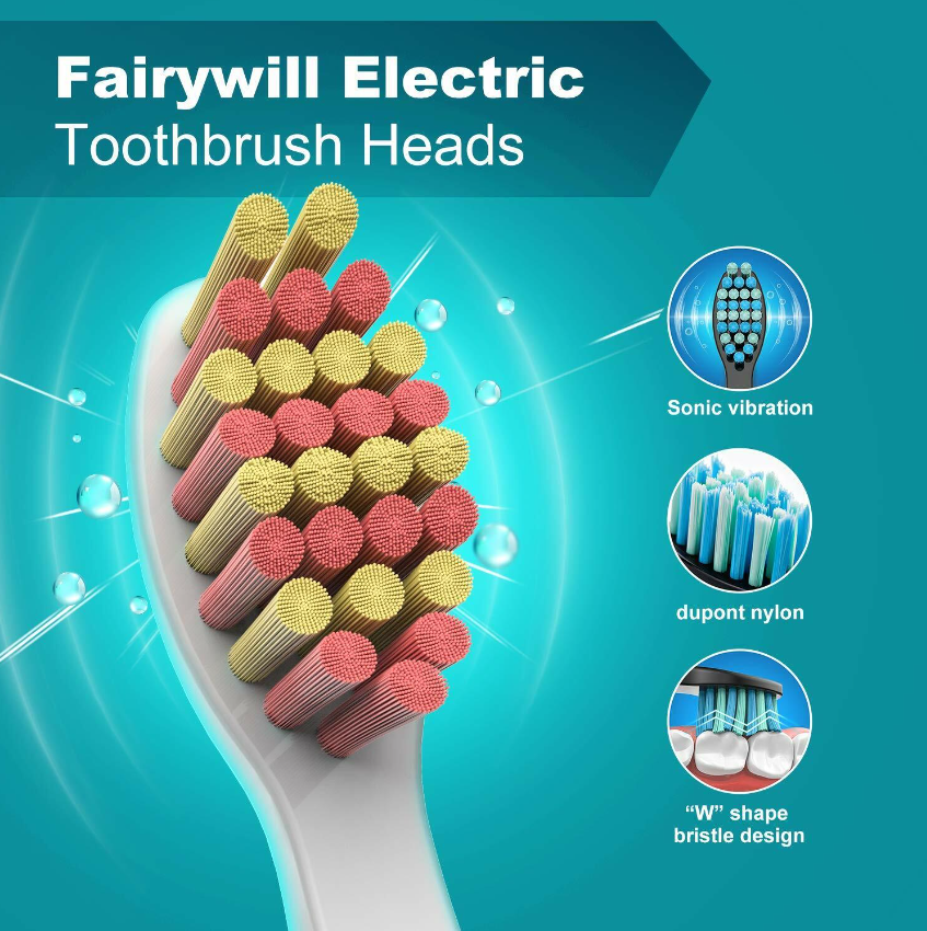 • ✅ 8 Brushing Heads With Dupont Nylon Bristles & 2 Point Picks - This economical sonic toothbrush set comes with 8 replacement heads, "W" waved bristles and slightly smaller heads to efficiently and easily clean harder to reach areas. The pointy pick is fantastic for cleaning between the teeth. Dupont Nylon bristles are optimal for giving you the best cleaning and they are soft for sensitive teeth and gums.