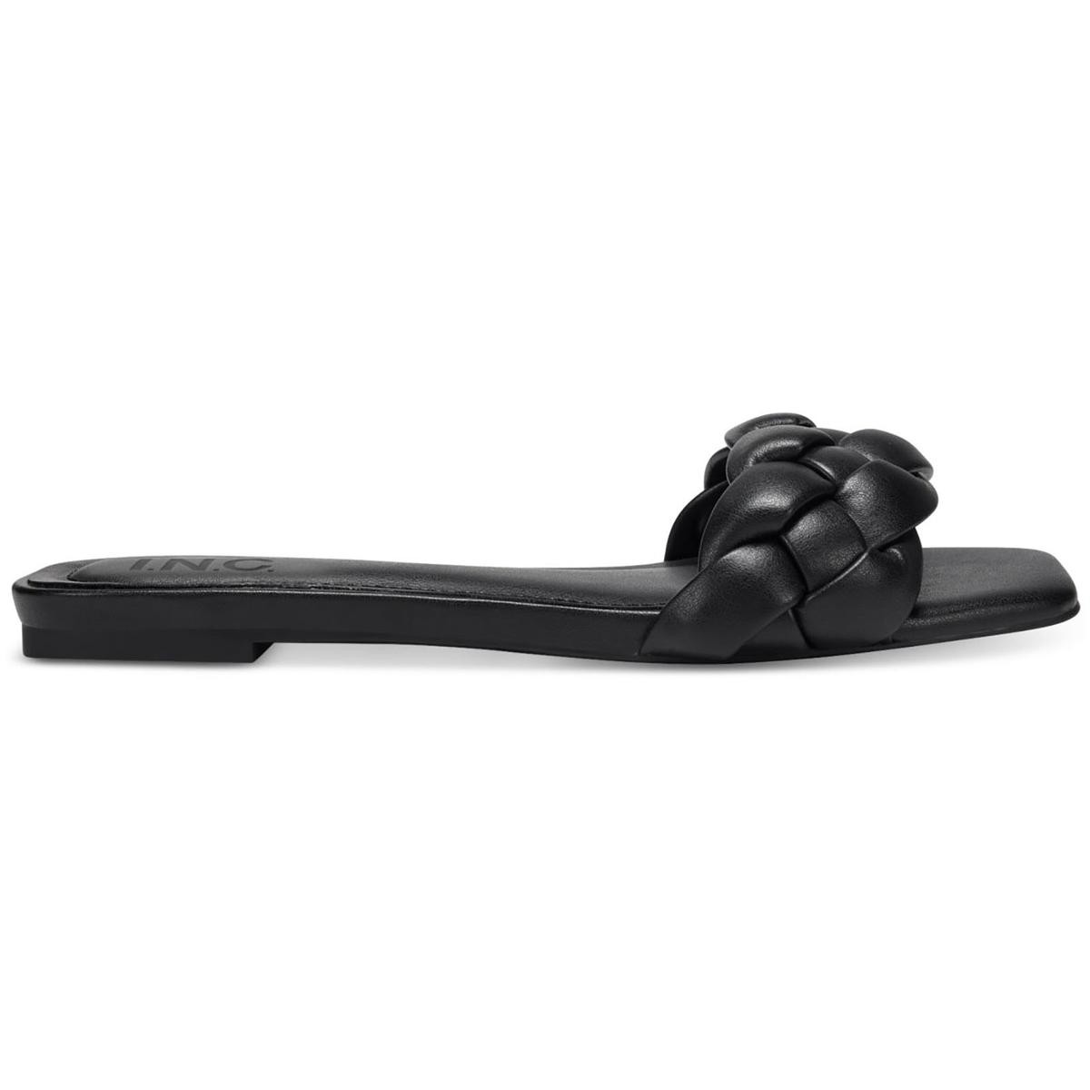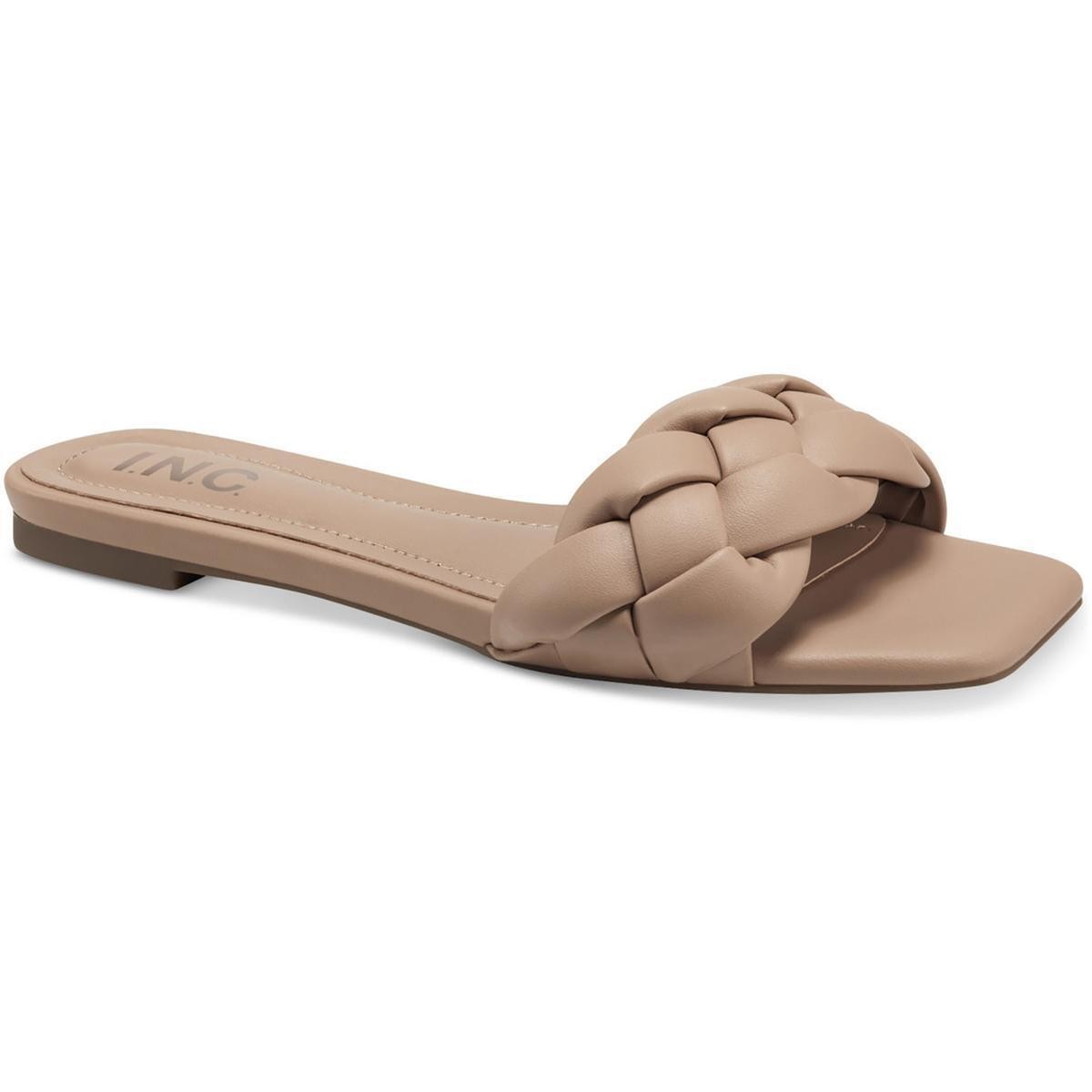 INC Womens Partee Faux Leather Slip On Braided Slide Sandals Shoes BHFO 0292
