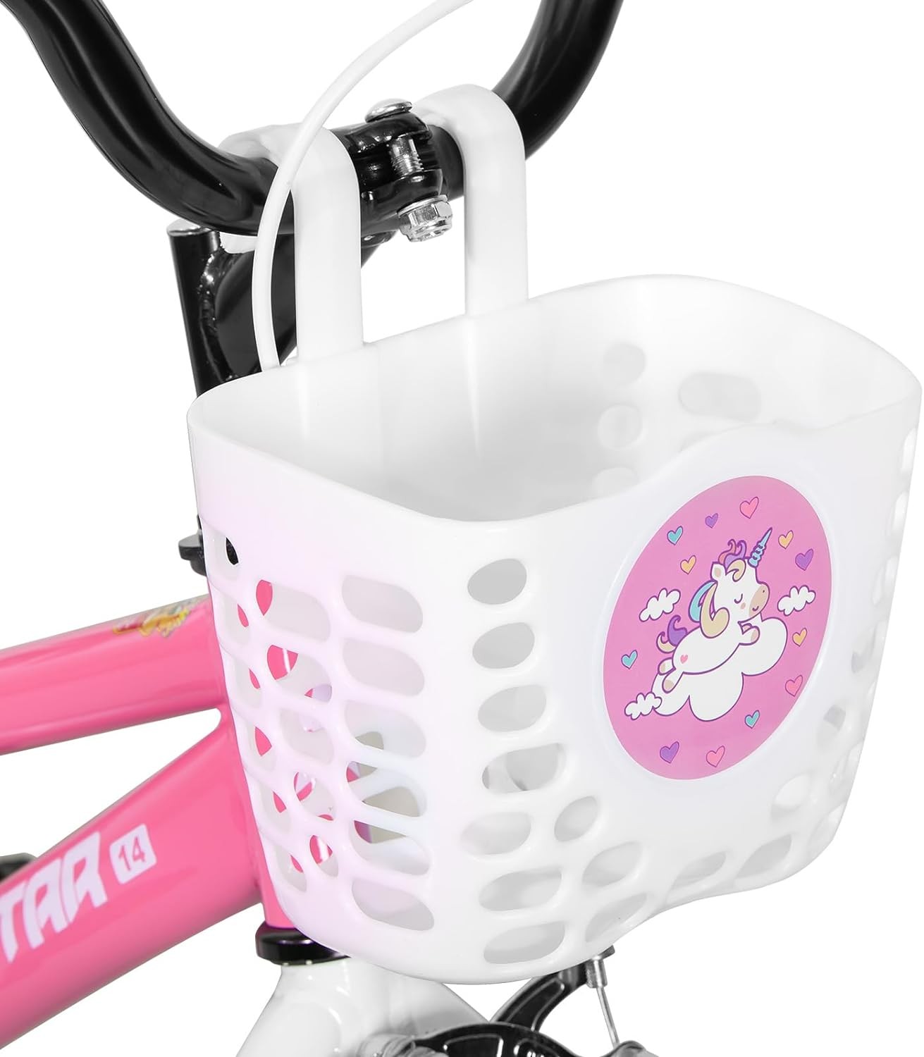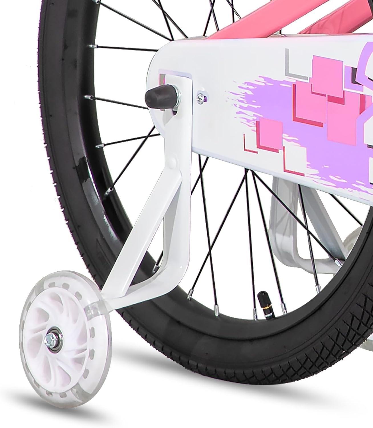 • DESIGN FOR KIDS - 1.This kids bike comes with flash training wheel, basket and water bottle for early rider. 2.Quick release seat simplify the height adjustment. 3.Saddle with holder to learn riding when the training wheel is off. 4. Foot brake and handbrake easy to provide phenomenal stopping power when needed.