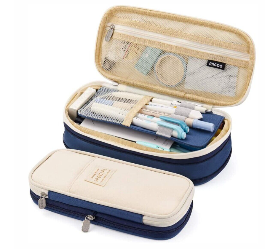 - Large enough to store all the stationery stuff, including a mesh zipper pocket and several loops compartment, also comes with a front pocket