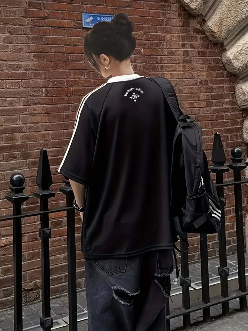 Letter Print T-shirt, Y2K Short Sleeve Crew Neck Top For Spring & Summer, Women's Clothing