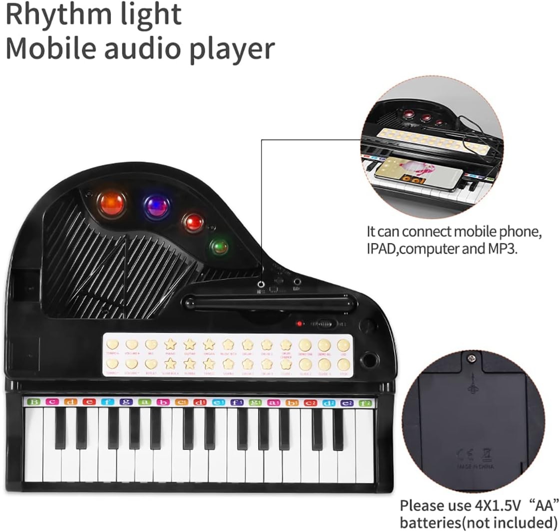 • [Support Connecting MP3 & Phone]—Comes with an audio cable to connect your MP3, phone, iPad or computer to the piano for playing music. Using a real working microphone, your kids could sing while playing, it can exercise children's self-confidence, and satisfy their desire to perform. Surprise your kids with our amazing Piano.