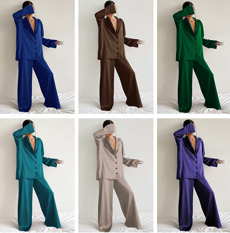 Luxury Women Oversized Silk Satin Sleepwear Sexy Pajamas Set Long Sleeves Pyjama