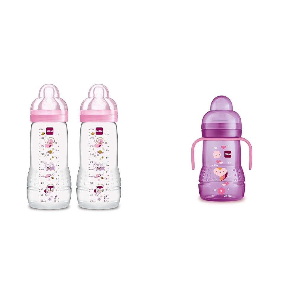 MAM Easy Active Baby Bottle 11oz, Easy Switch Between Breast and Bottle, Easy to Clean, 4+ Months & Plastic Trainer Cup (1 Count), 8 oz. Trainer Drinking Cup with Extra-Soft Spout