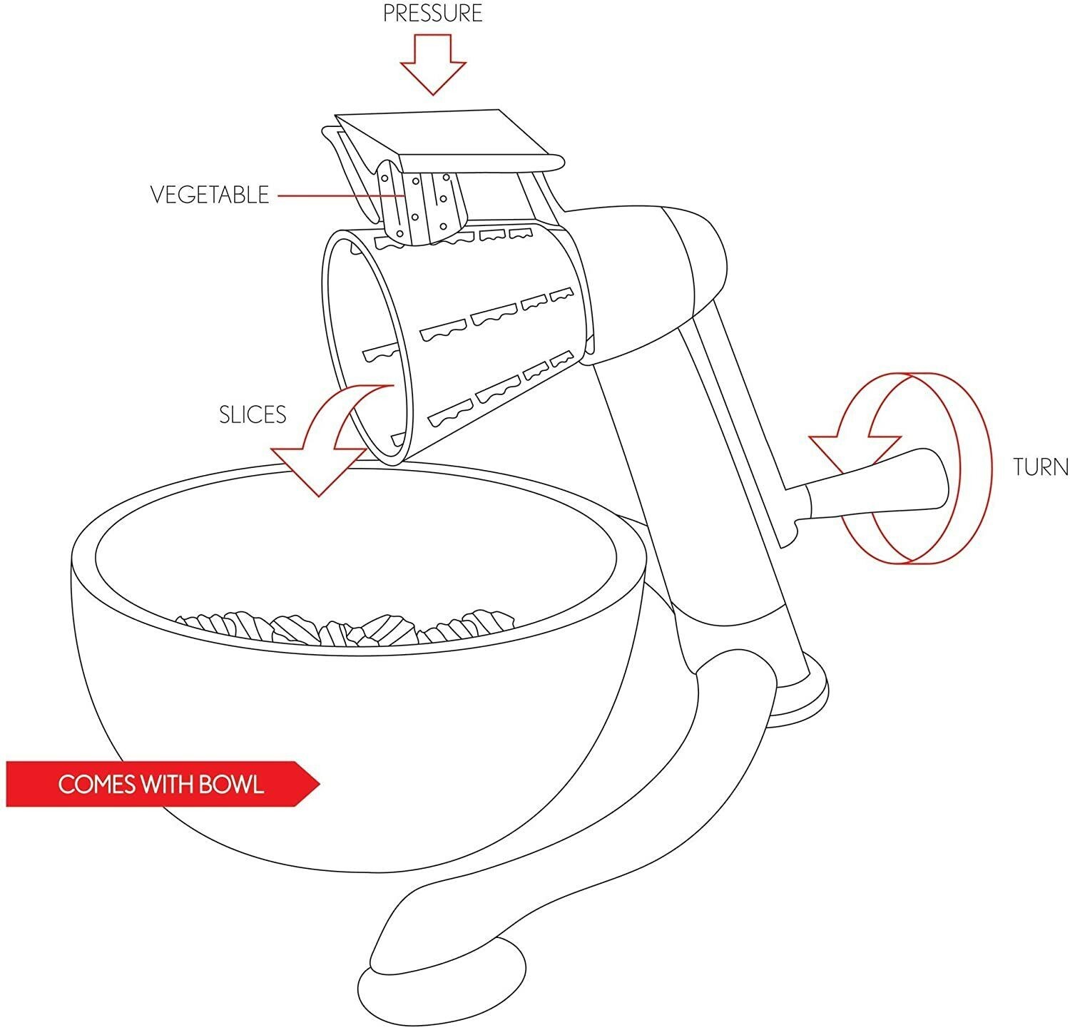 1. Come with 5 different drums blades, which is great for cheese, vegetables, potatoes, nuts, onions, salad, pizza toppings and more.