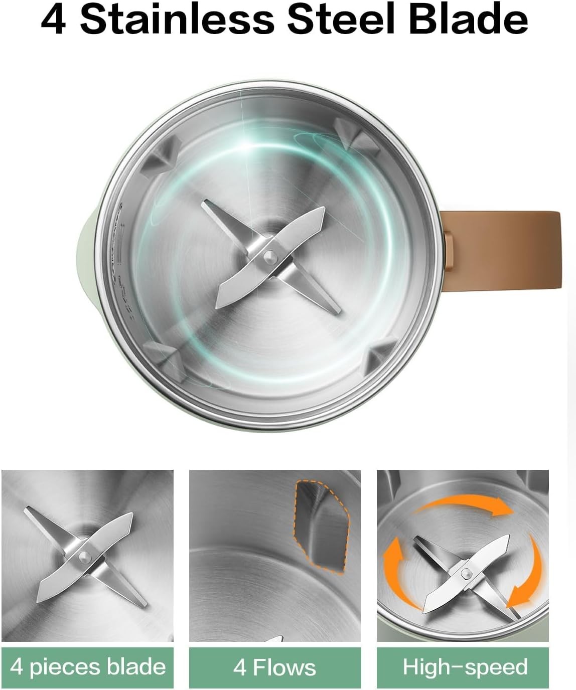 • ?【Powerful & Superfine Gringding】This nut milk maker uses a unique and customized 4-leaf stainless steel layered blade, which can pulverize nuts, seeds, and grains powerfully, resulting in smooth and creamy nut milk. The built-in quadrilateral stirring column can make the Ingredients collide repeatedly. Which ensures the smooth taste of the beverage, the nut milk is super fine and can be drunk directly without filtering.