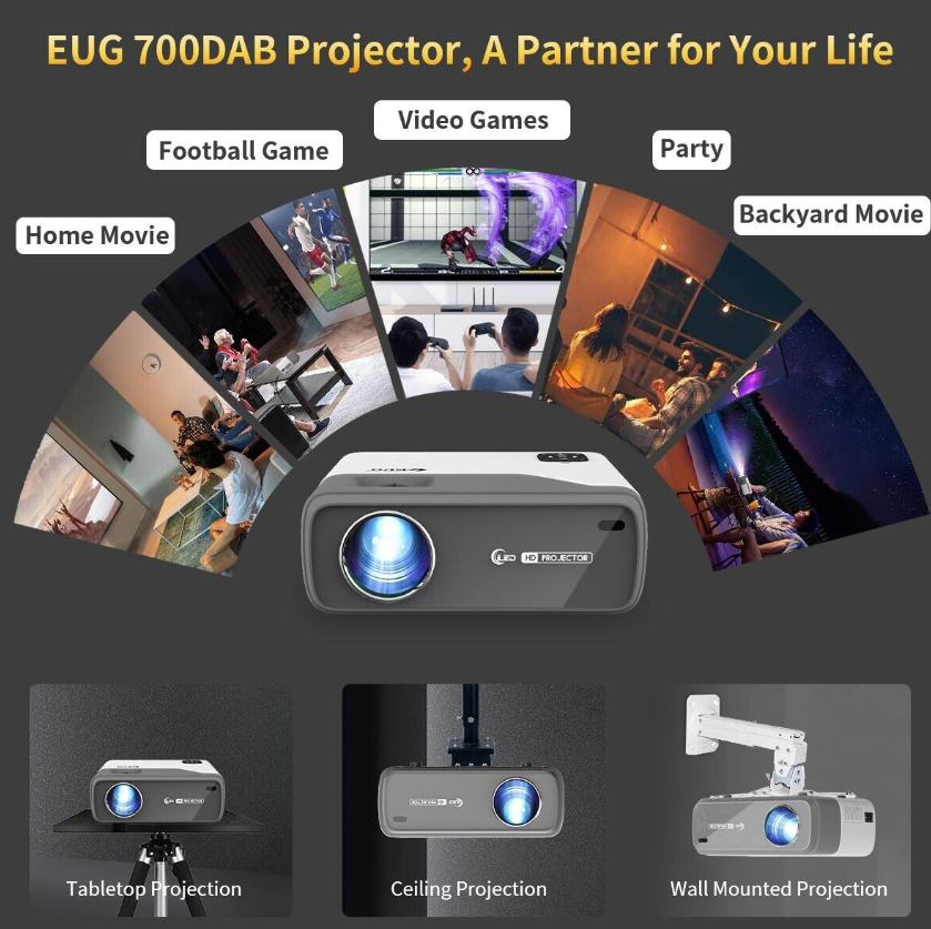 Built-in Speakers, Ceiling Projection, HD Ready, Portable, Rear Projection, Table Top Projection