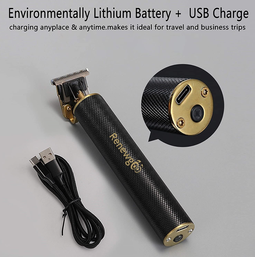 RENEWGOO Professional cordless hair clipper, trimmer and detailer is an all-in-one full power clipper. This is a trimmer for intricate designs or personal trimming of the ear, nose, and brow. Our T-Blade attachment allows for easy trimming, grooming, and touch-ups. The precision trimmer head provides close and precise trims and detailing. The quiet, smooth-running motor stays cool, and its lightweight which means your arm won't become exhausted it also makes it easier to travel with.