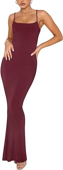REORIA Women's Sexy Lounge Slip Long Dress Elegant Sleeveless Backless Ribbed Bodycon Maxi Dresses