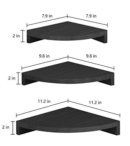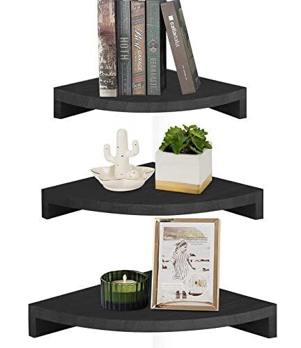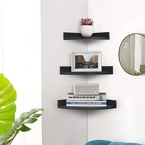 Set of 3 Corner Wall Mounted Shelf Wood Floating Storage Hanging Shelves Display