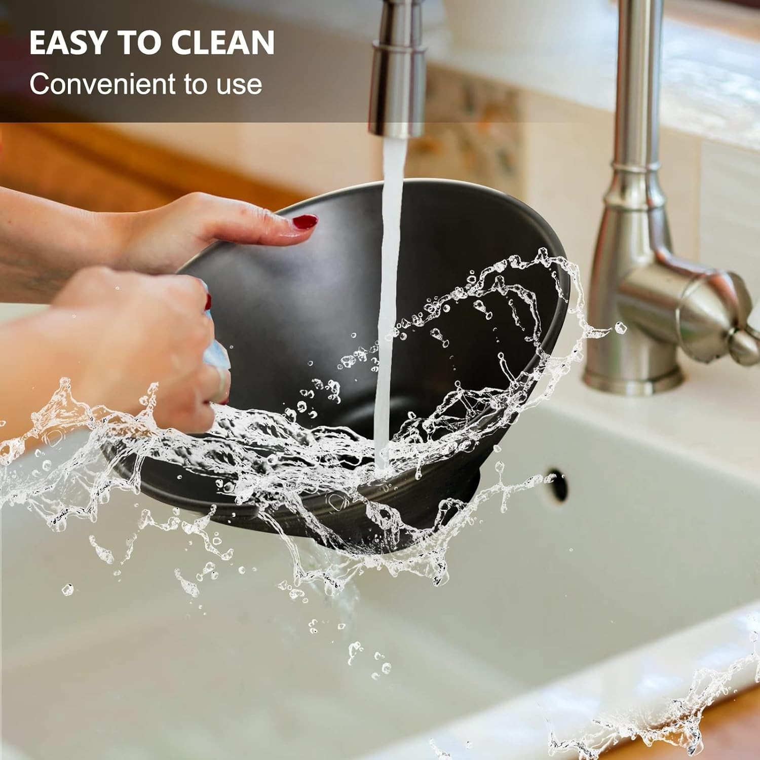 • ?【EASY TO CLEAN】: These noodle bowls have a space-saving design and smooth round edges. It can be cleaned in the sink or dishwasher. Unlike ceramic or porcelain ramen bowls,you don't have to worry about it breaking, and it is so easy ! And please don't put it in the microwave. This is not microwave safe.