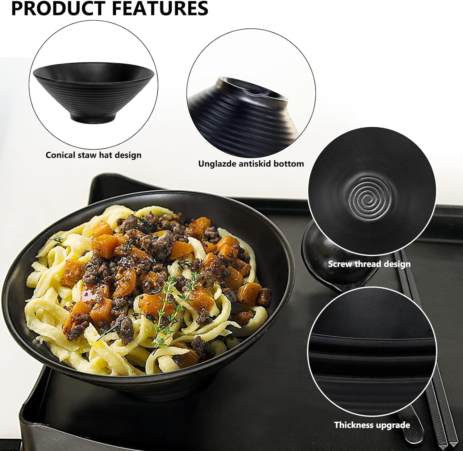 • ?【UNIQUE DESIGN】: The large ramen bowl is designed to hold more food and prevent it from spilling. The thickened bottom effectively prevents the bowl from slipping during use. This ramen bowl set has an elegant shape and guarantees the best quality.