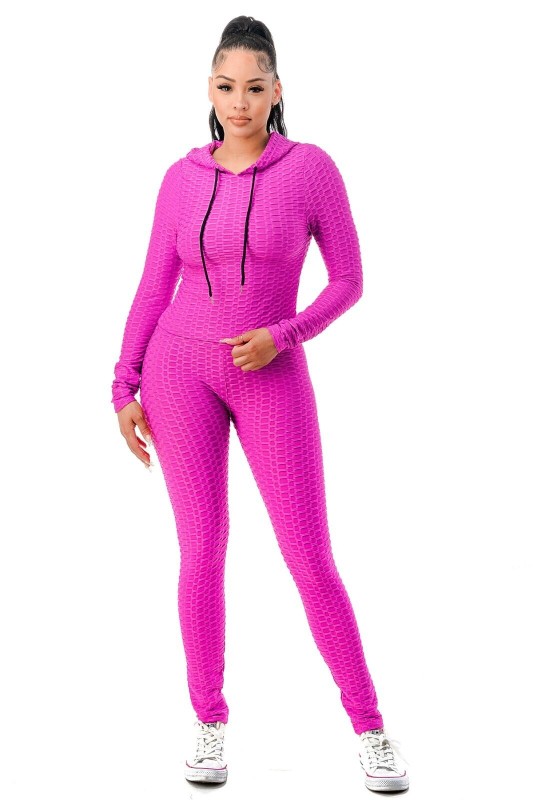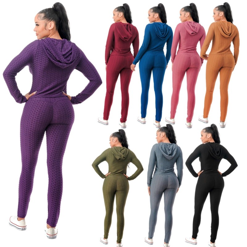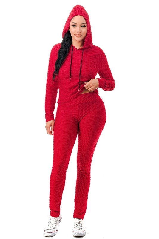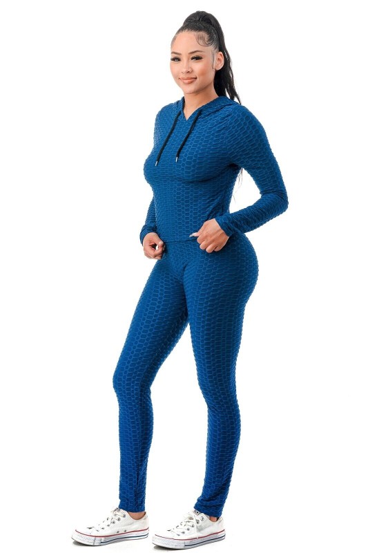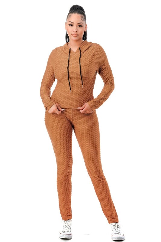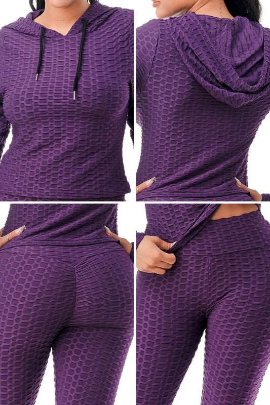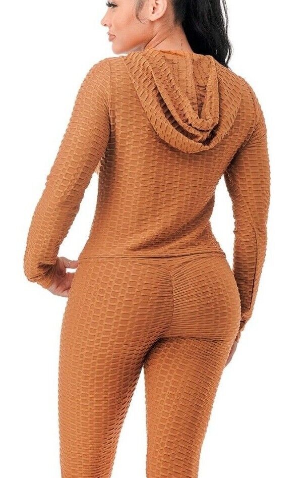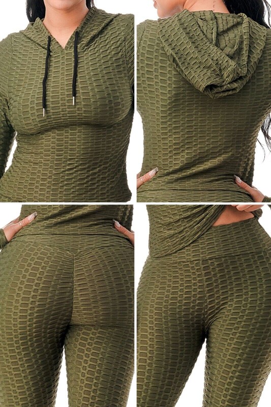 Women Texture 2 Piece Outfit Hoodie Top and Yoga Leggings Pants Workout Set