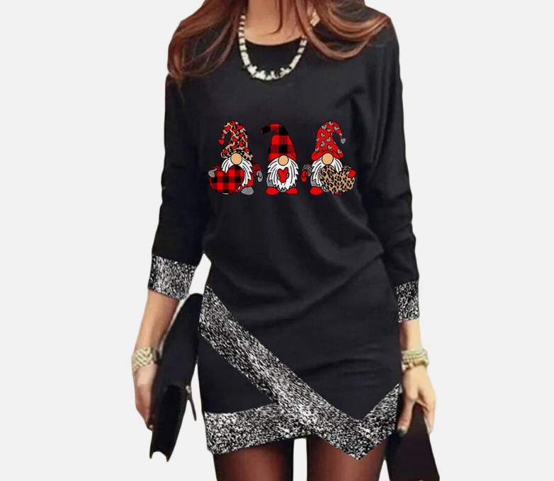Women's Fashion Leisure Christmas Round Neck Long Sleeve Irregular Hem Dress
